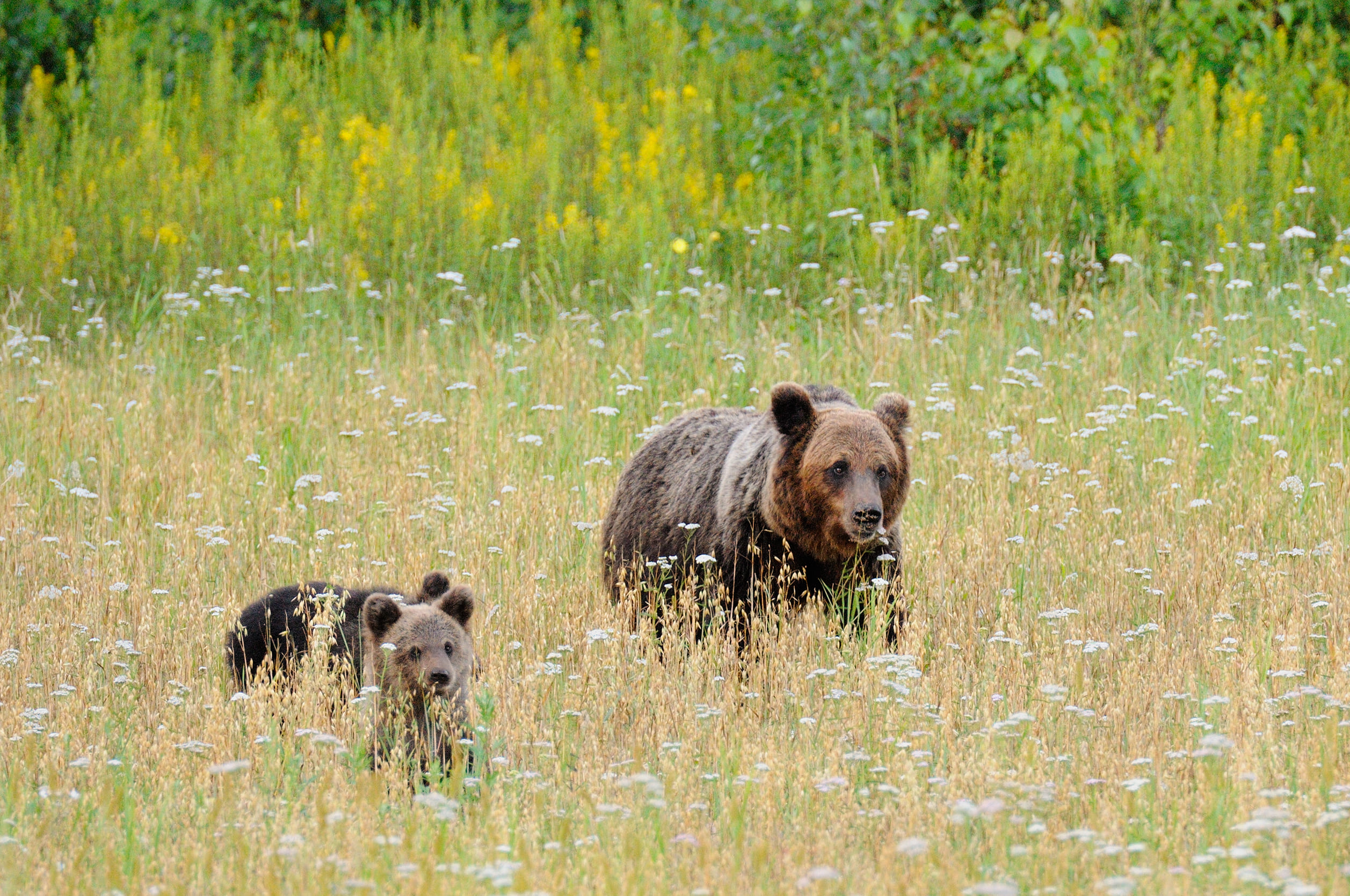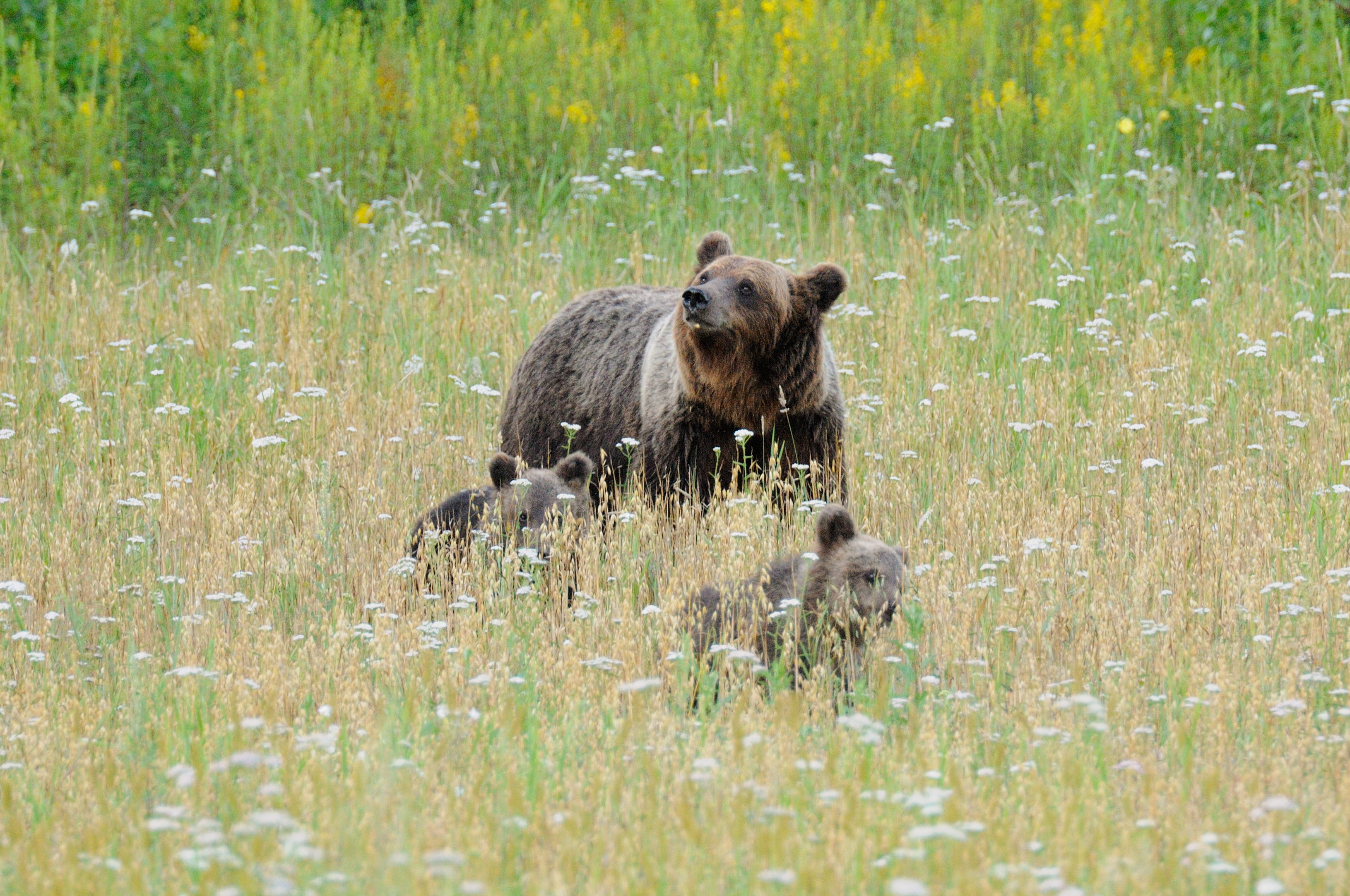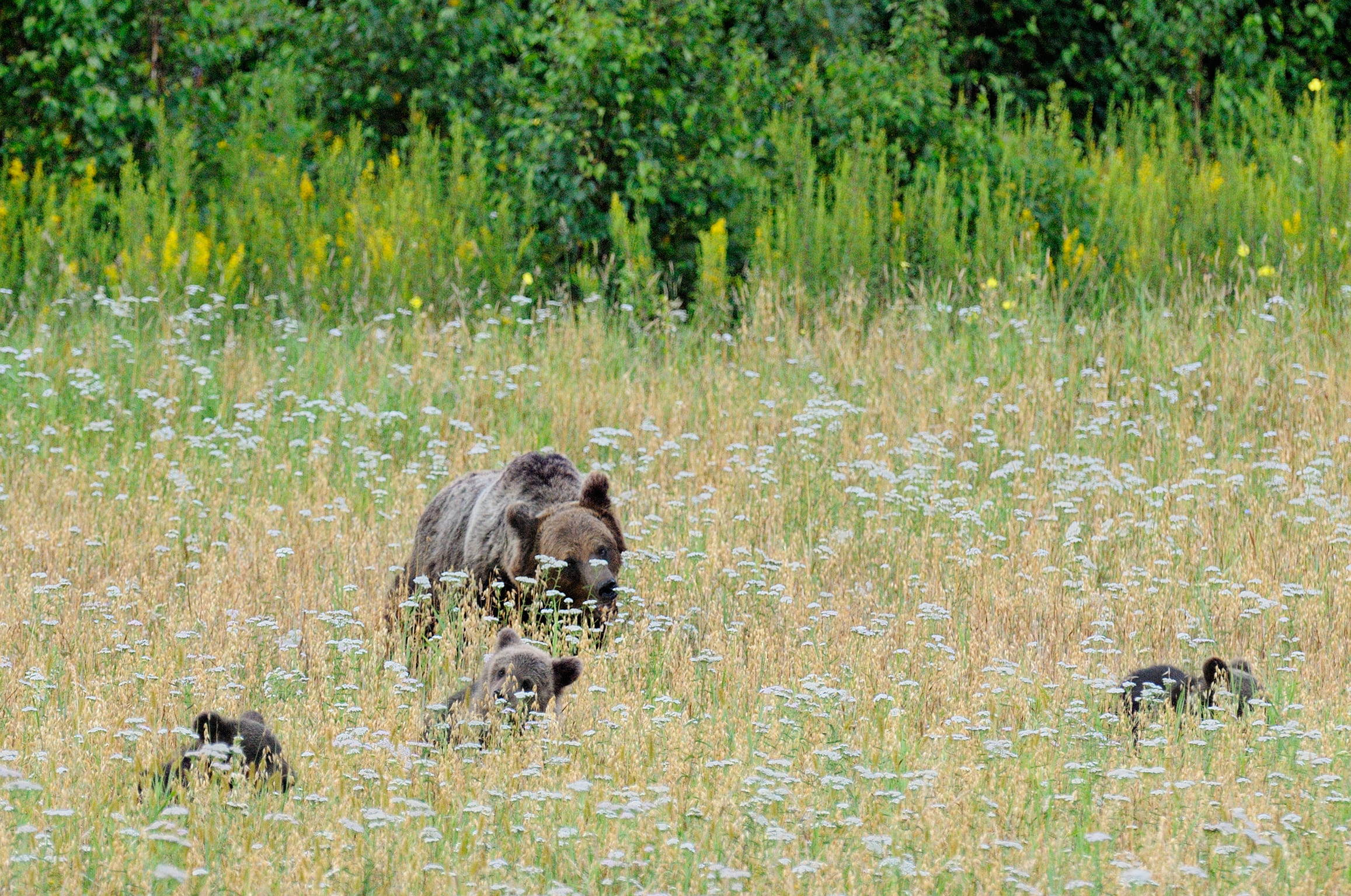 К моменту созревания овса научные сотрудники заповедника установили несколько фотоловушек, которые помогли собрать много полезной информации и успешно спланировать фотосъемку замечательной семейки косолапых: медведицы и трех медвежат-непосед!