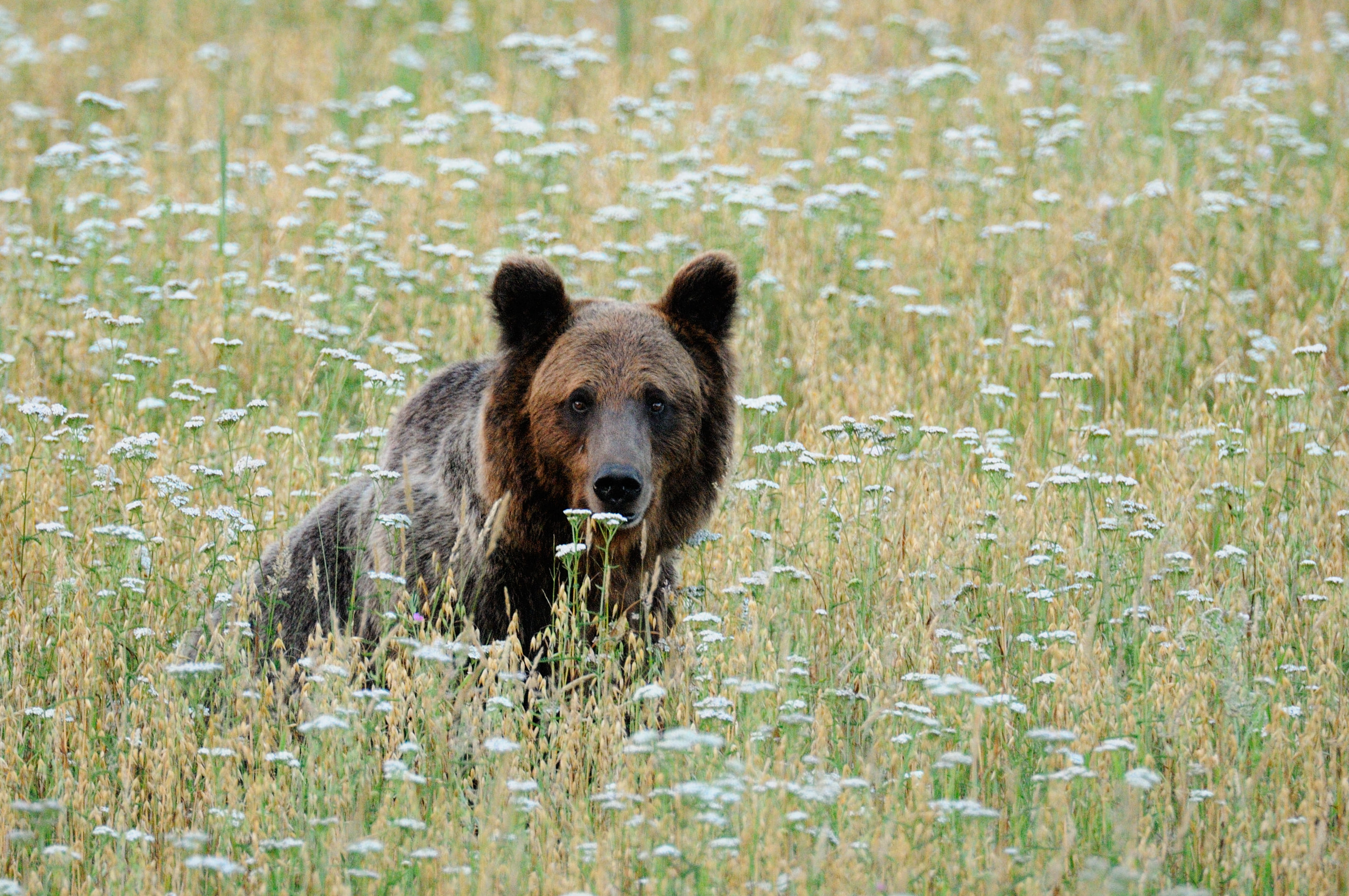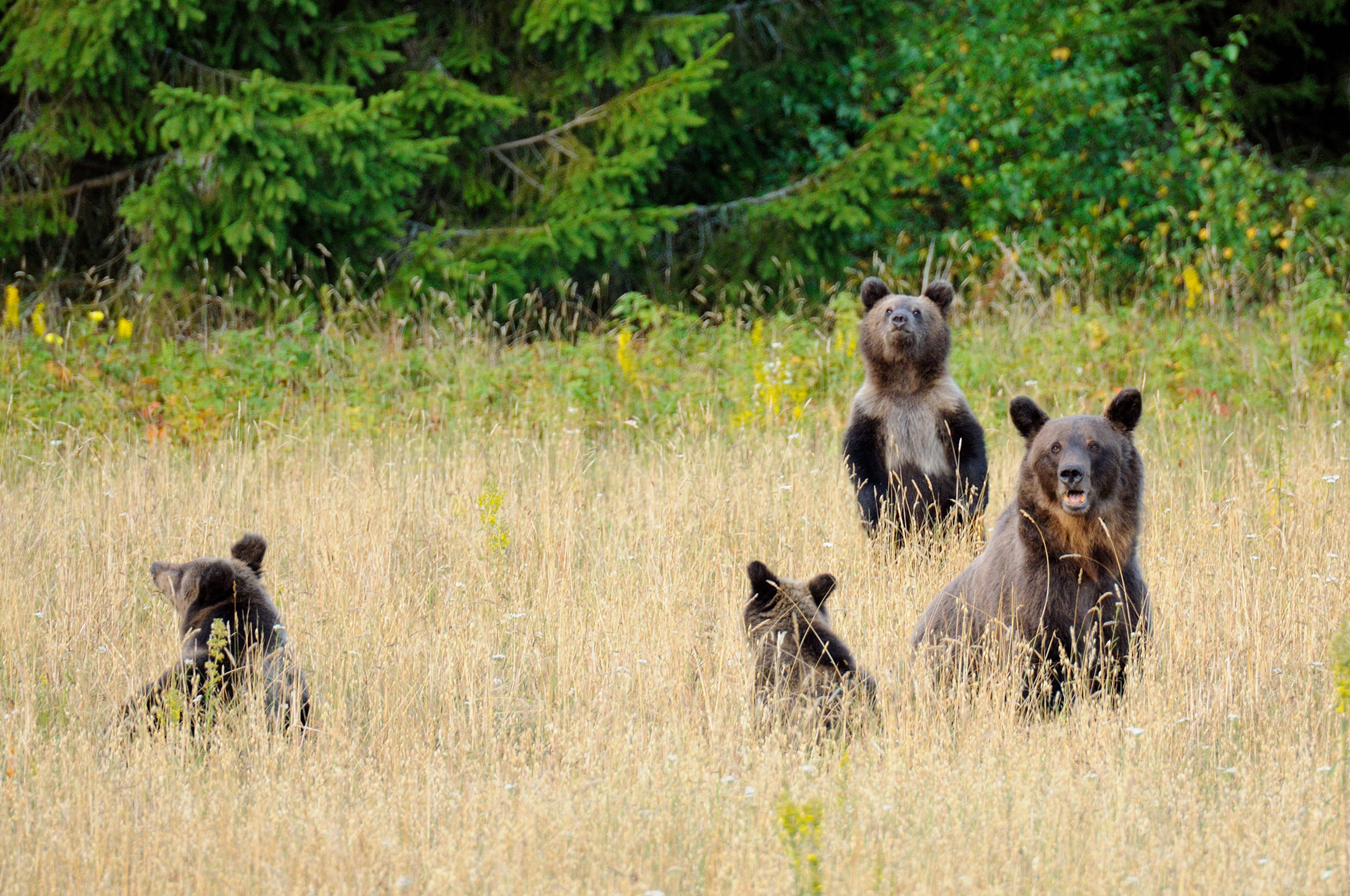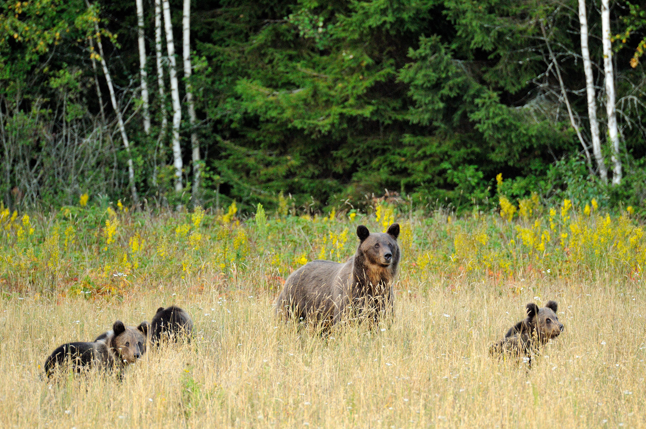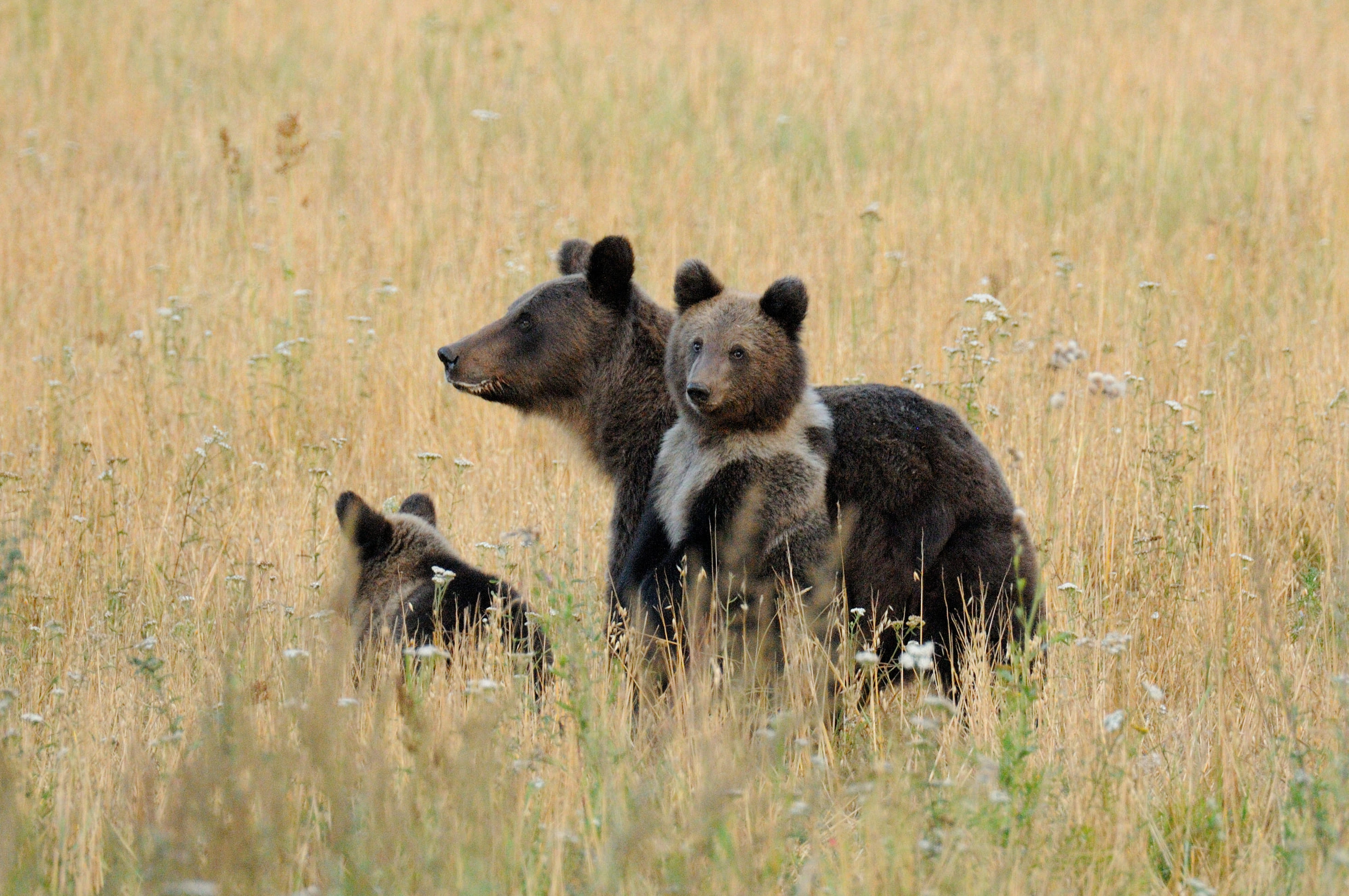 К моменту созревания овса научные сотрудники заповедника установили несколько фотоловушек, которые помогли собрать много полезной информации и успешно спланировать фотосъемку замечательной семейки косолапых: медведицы и трех медвежат-непосед!