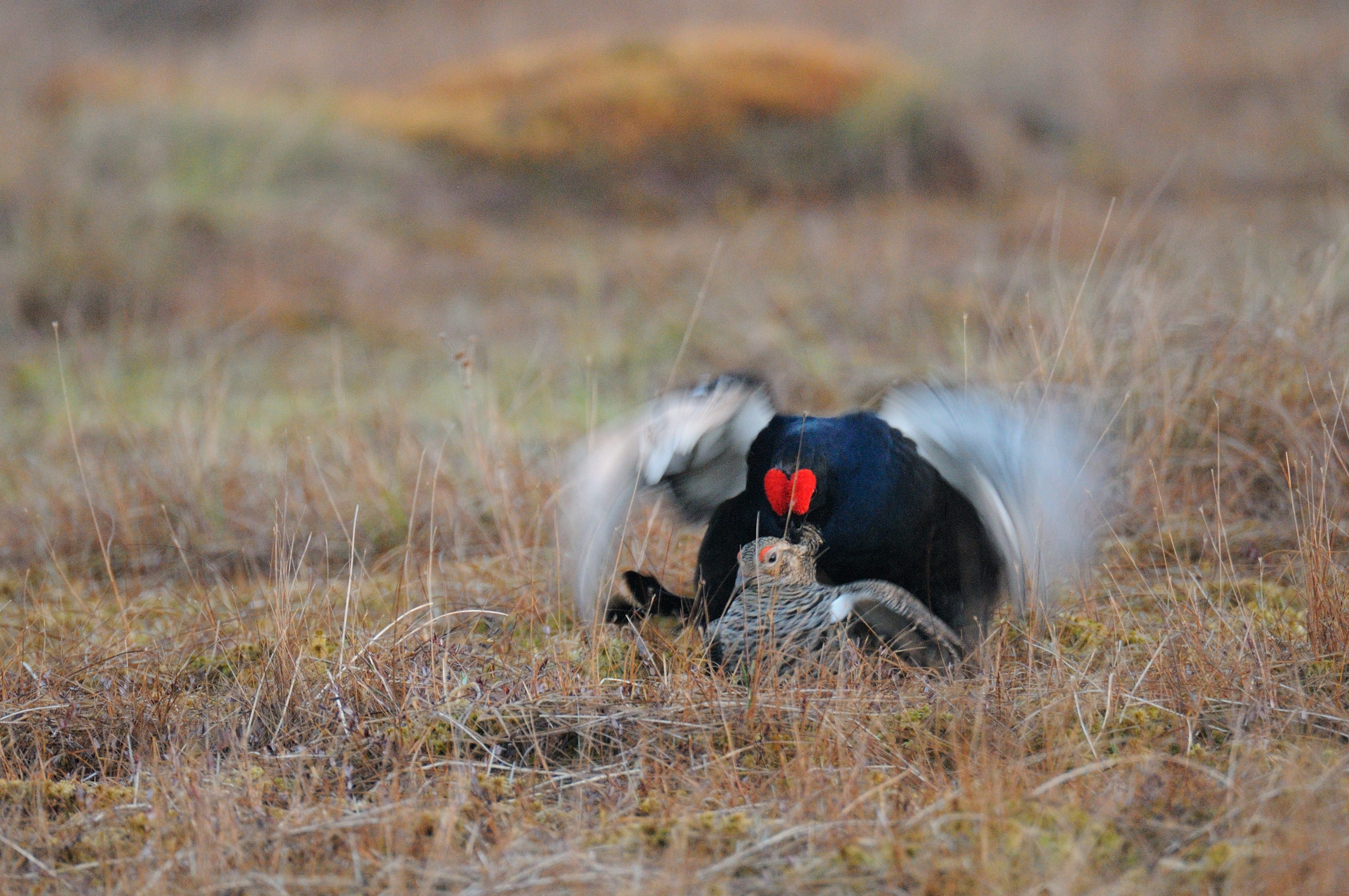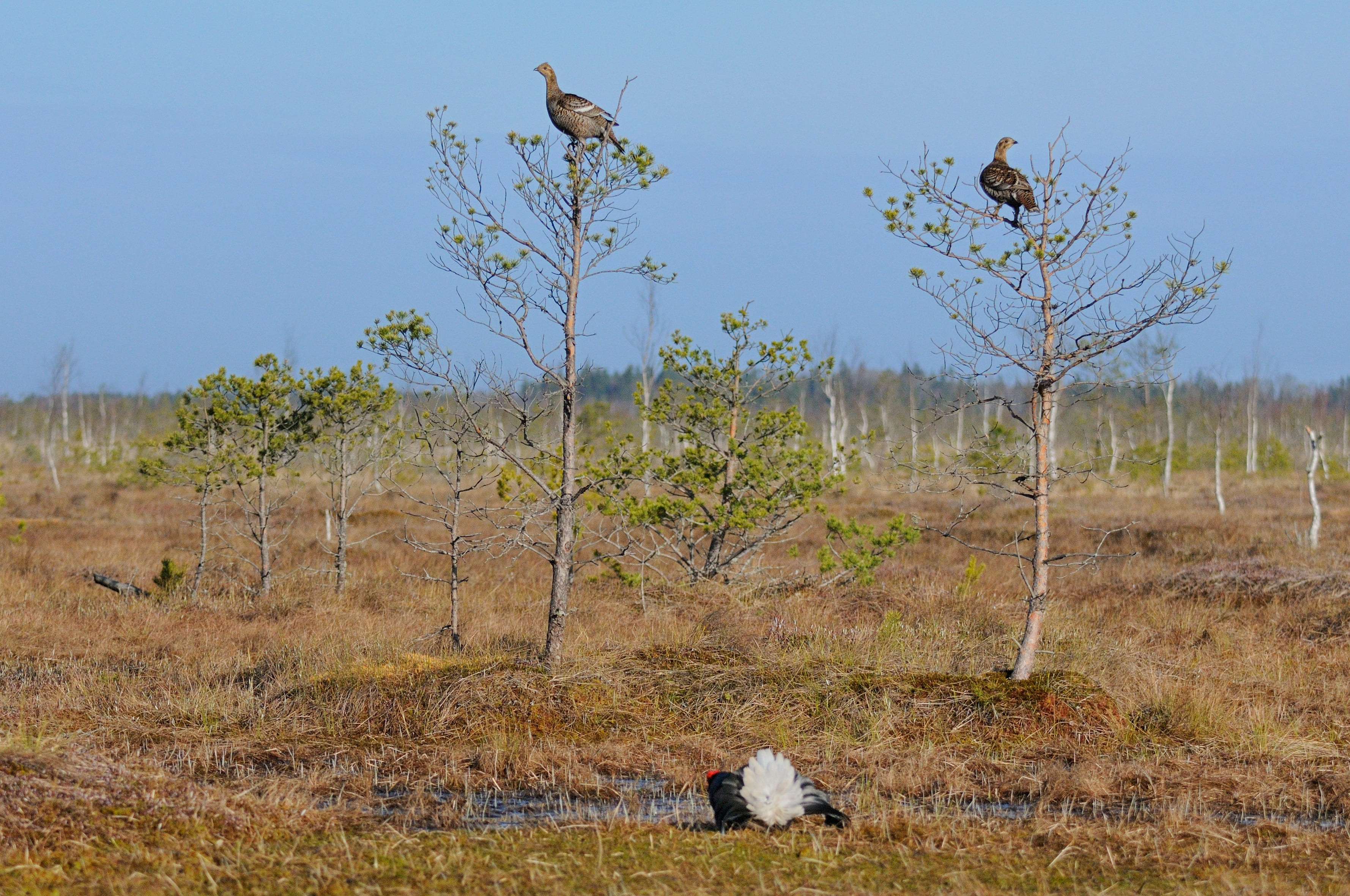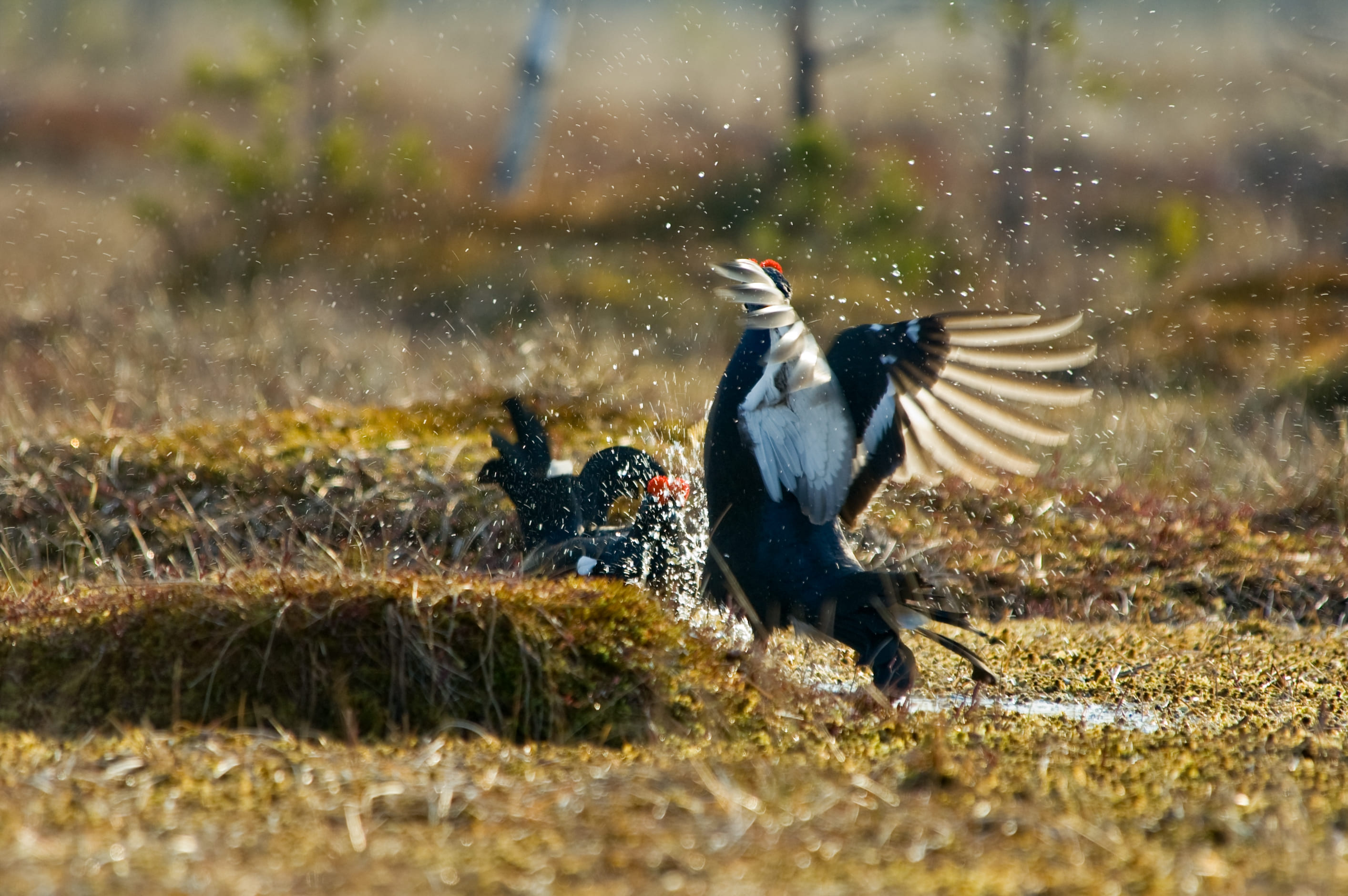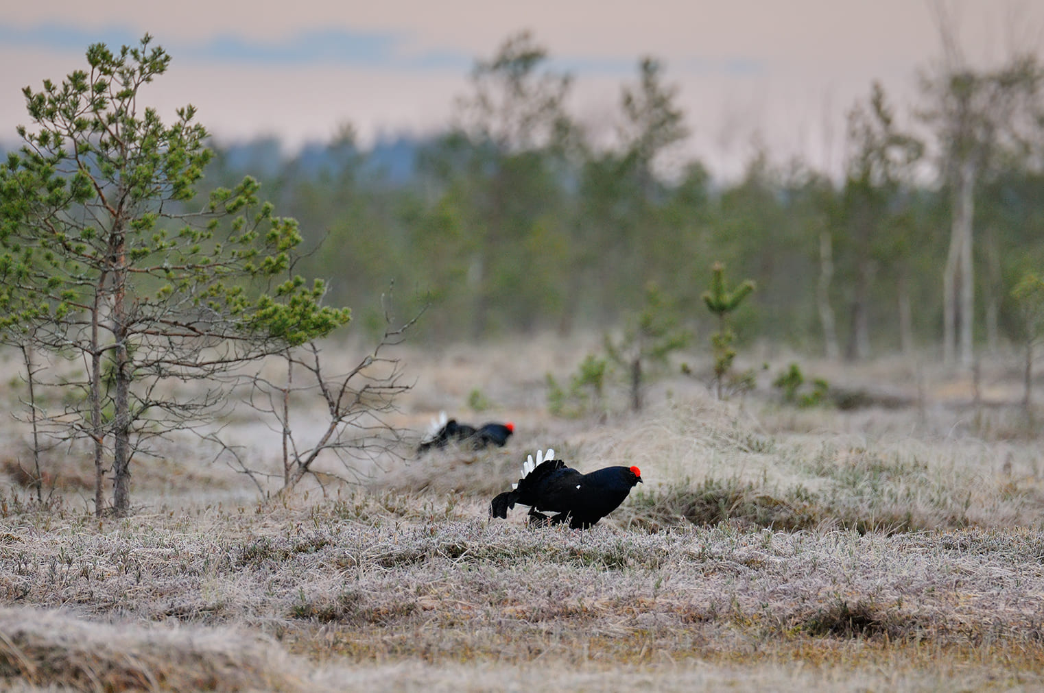 И вот в начале пятого на ток, громко хлопая крыльями, начали прилетать первые птицы. Они садились на кочки, незамедлительно начиная свое «бормотание» и «чуфыканье» – это самцы сигнализировали о своем присутствии. Ощущение в такой момент просто фантастическое! Вот она - настоящая дикая природа, а ты ее небольшая частичка. С каждой минутой птиц становилось все больше, издаваемые ими звуки заполняли все вокруг, создавая «эффект наушников».