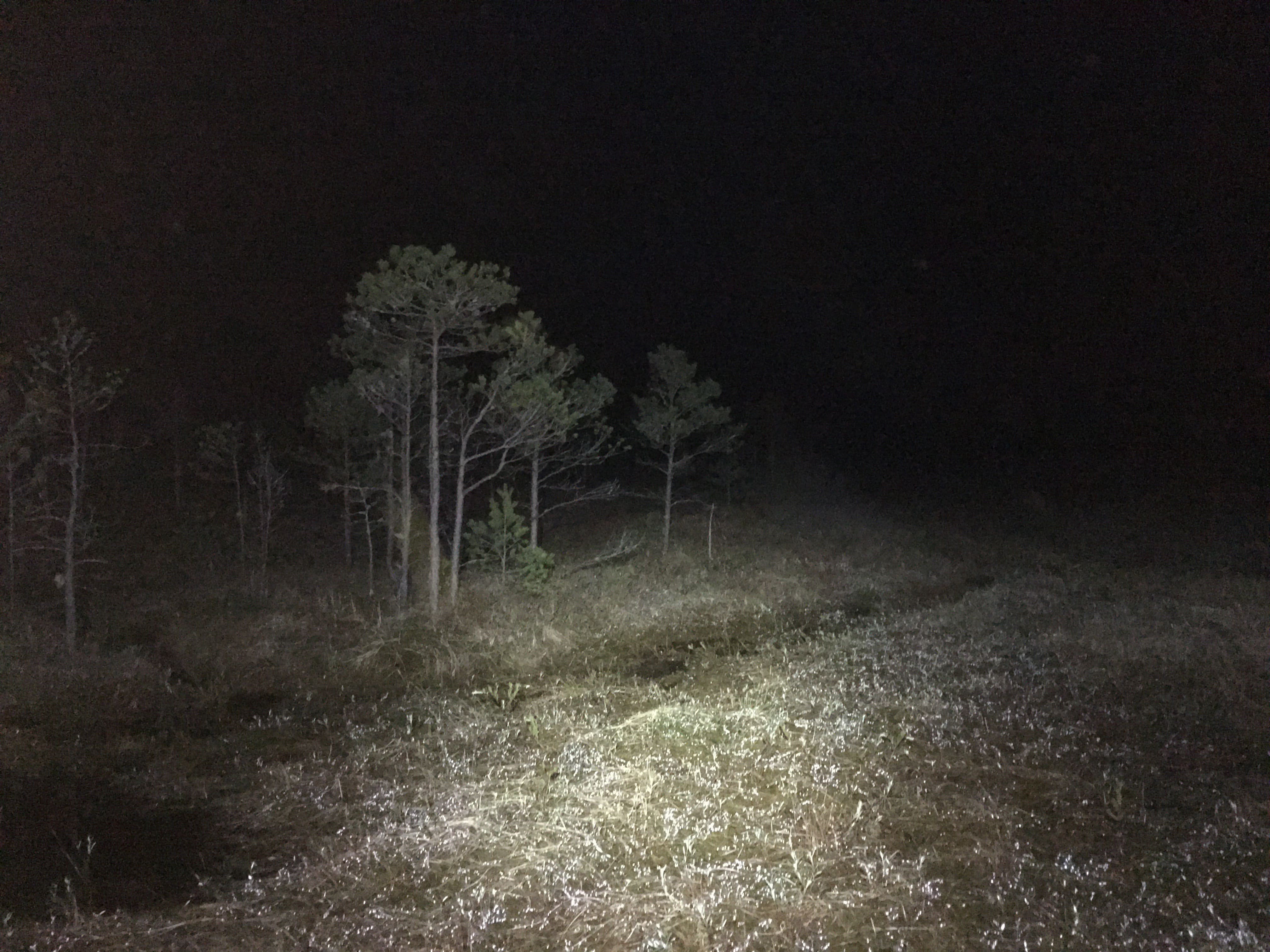 Так как Пострежское болото находится далеко от центральной усадьбы заповедника, дабы не опоздать, нам пришлось выехать в два часа ночи. Заранее было подготовлено все необходимое: теплая одежда, специальные высокие резиновые сапоги, термос с горячим чаем, фонарик, блокнот с ручкой, ну и, конечно же, фотоаппарат. Спустя час мы уже стояли на окраине болотного массива. Теперь нас ожидал самый трудный этап всего путешествия – преодолеть 2,5 км топкого верховика. Вооружившись опорными палками, в свете фонариков наша группа отправилась в долгий путь по ночному болоту. Первые несколько десятков метров пути показались мне довольно легкими, однако чем больше мы уходили вглубь, тем все труднее становилось двигаться.